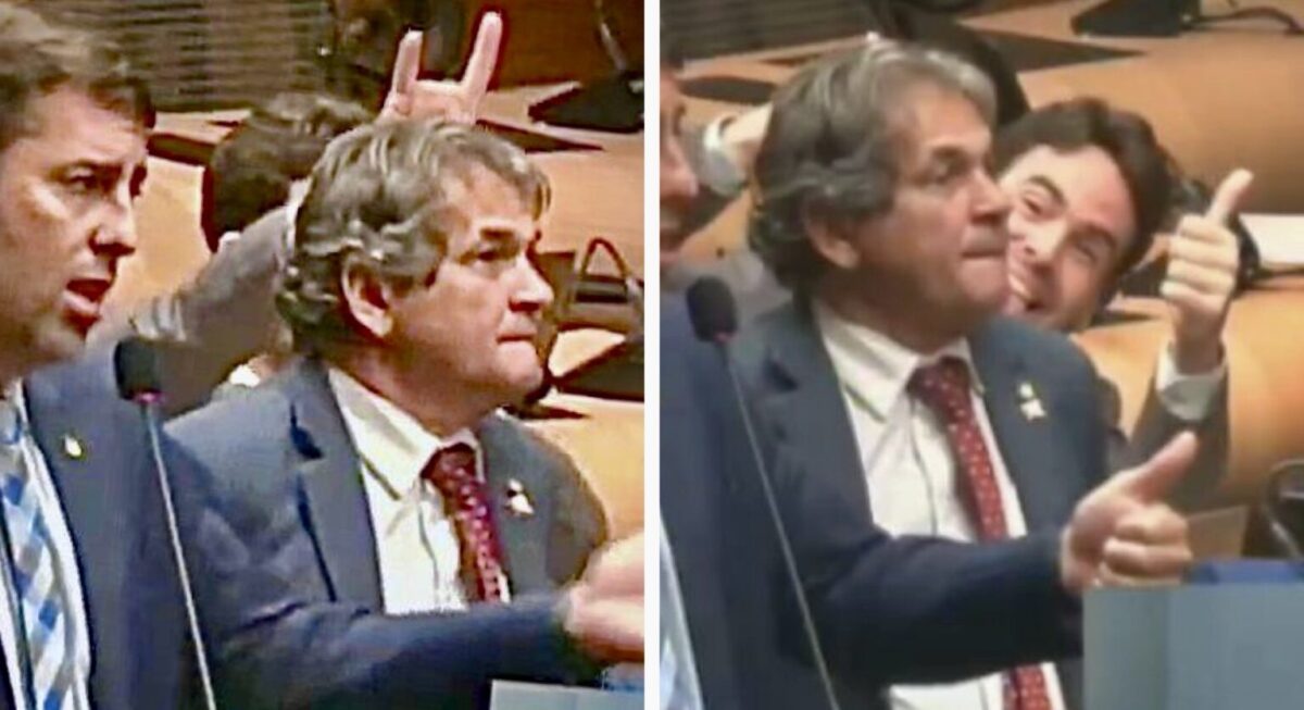 Do blog Dantas Barreto O vereador Chico Kiko (PSB)processará e denunciará ao Conselho de Ética da Câmara do Recife o também vereador Eduardo Moura (Novo). O socialista afirmou ter ficado indignado com a atitude do colega, na sessão dessa terça-feira (10). Chico Kiko disse que foi “vitima de agressão moral” quando Moura fez um gesto com os dedos insinuando “chifres”. “Estou no meu terceiro mandato, sempre acompanhei a rotina política da Câmara de vereadores e nunca vi uma atuação tão