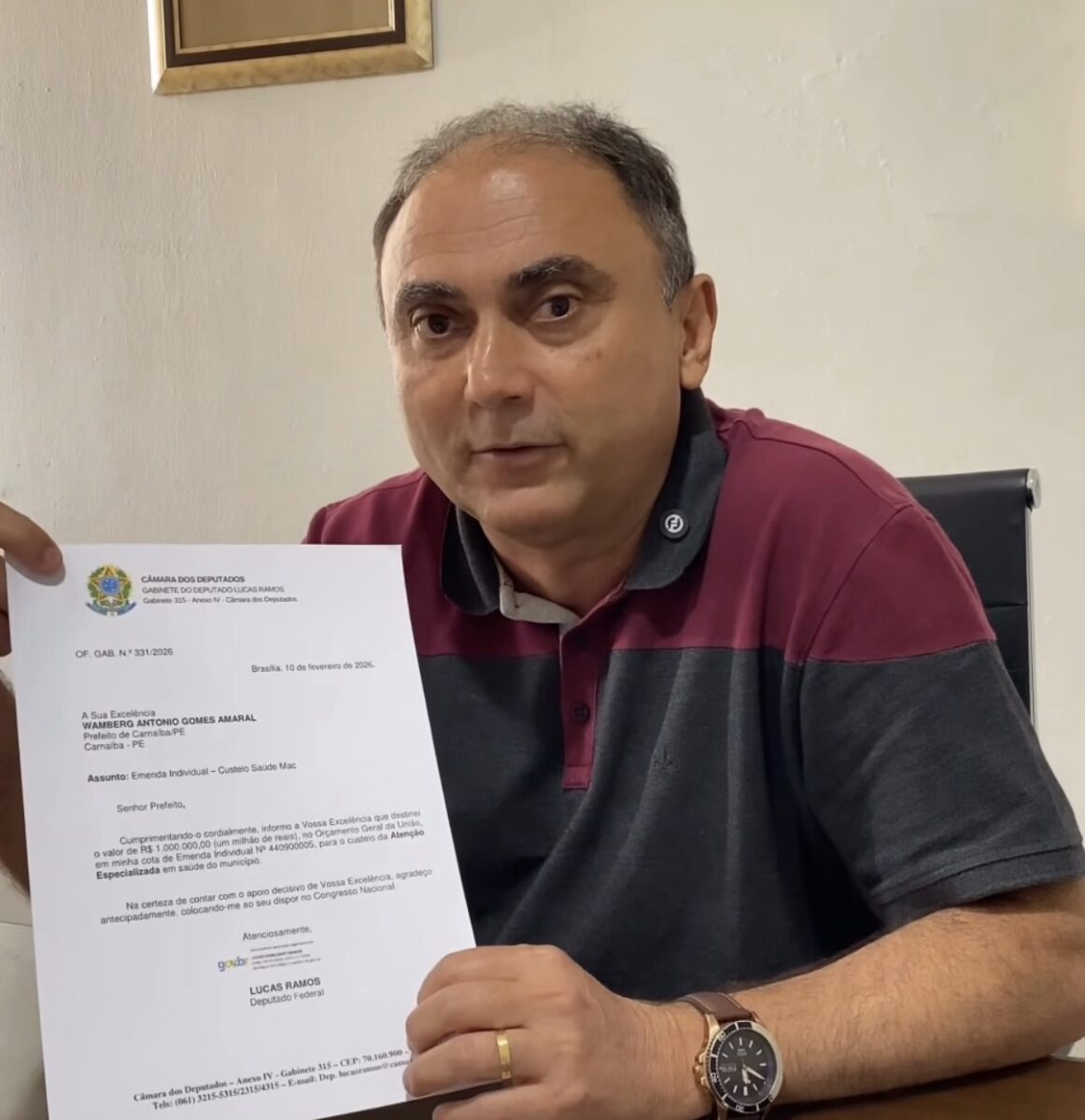 O prefeito de Carnaíba, Berg Gomes, utilizou as redes sociais para agradecer ao deputado federal Lucas Ramos pela destinação de uma emenda parlamentar no valor de R$ 1 milhão para a área da saúde do município. Na publicação, o gestor informou que o recurso será destinado ao custeio da Atenção Especializada em Saúde. Segundo Berg Gomes, o valor representa um reforço para manter e ampliar os atendimentos oferecidos à população. O prefeito destacou que a verba contribuirá para fortalecer consultas,