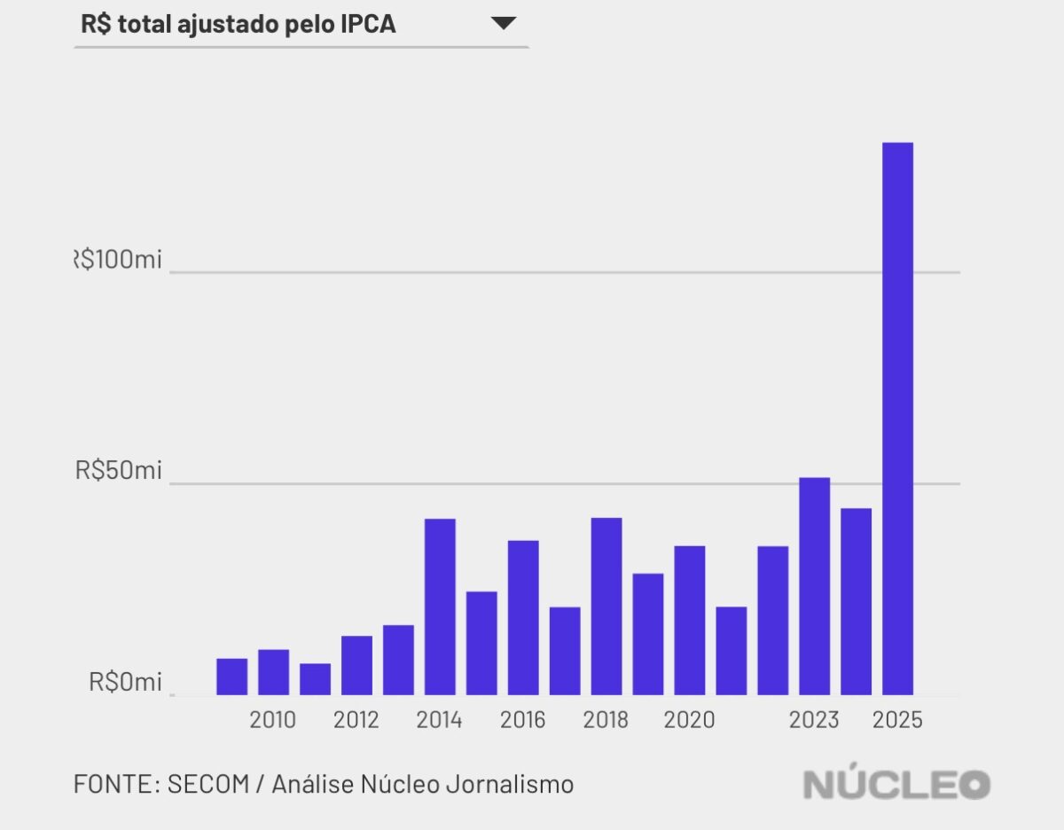 A Secretaria de Comunicação da Presidência da República (Secom) registrou em 2025 o maior volume de gastos com anúncios na internet desde que os dados começaram a ser divulgados: R$129,6 milhões.