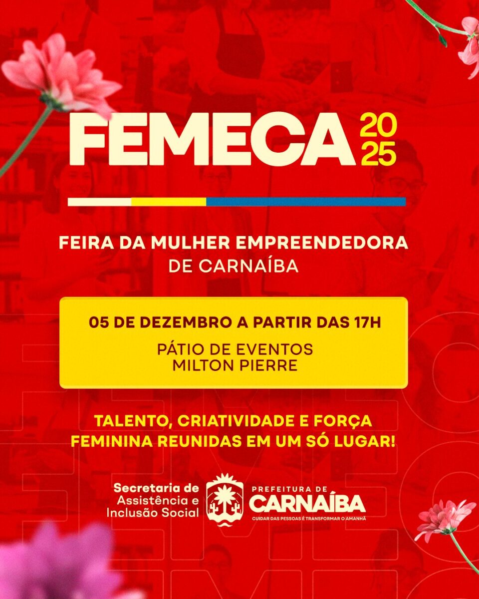 A cidade de Carnaíba se prepara para receber, nesta sexta-feira (5), a FEMECA 2025, Feira da Mulher Empreendedora de Carnaíba, evento que celebra o protagonismo feminino na economia local. A iniciativa da Prefeitura Municipal, por meio da Secretaria de Assistência e Inclusão Social, acontece a partir das 17h, no Pátio de Eventos Milton Pierre. A feira reunirá empreendedoras de diversos segmentos, incluindo vestuário, artesanato, alimentação e cosméticos, oferecendo ao público a oportunidade de conhecer e adquirir produtos locais. Além da