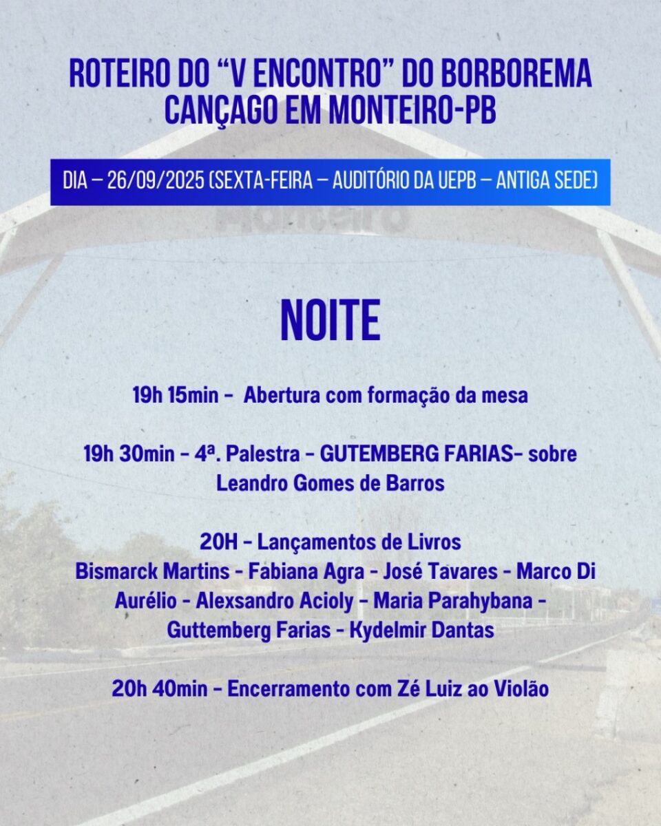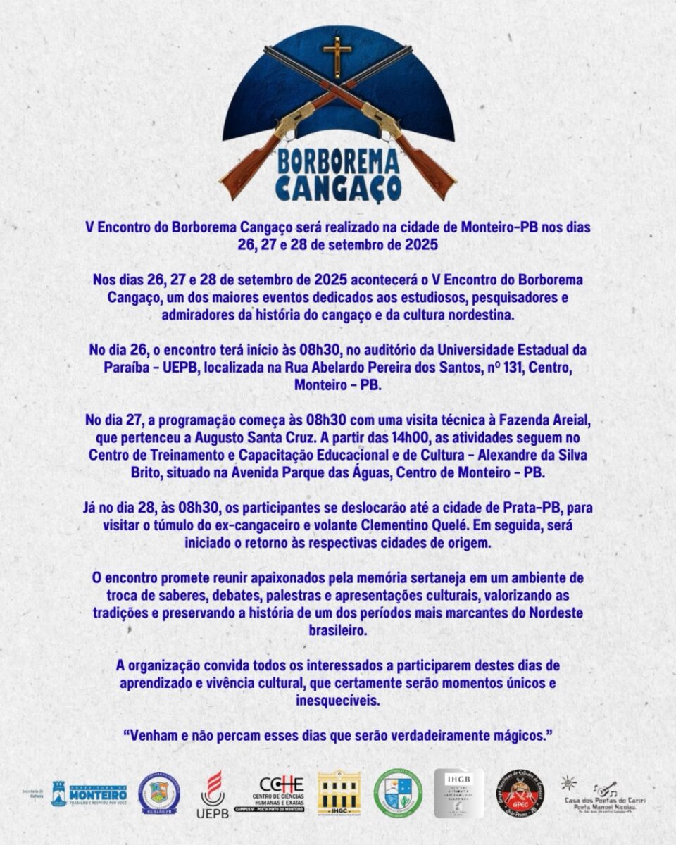A escolha do local para o lançamento também é estratégica. O evento acontecerá durante o 5º Encontro do Conselho Pimentel do Borborema Cangaço, que ocorre nos dias 26, 27 e 28 de setembro na cidade de Monteiro. Acioly, que é conselheiro perpétuo da organização, foi convidado pelo Prsidente do Conselho, Julierme, que prefaciou o livro, para fazer o lançamento durante o evento.