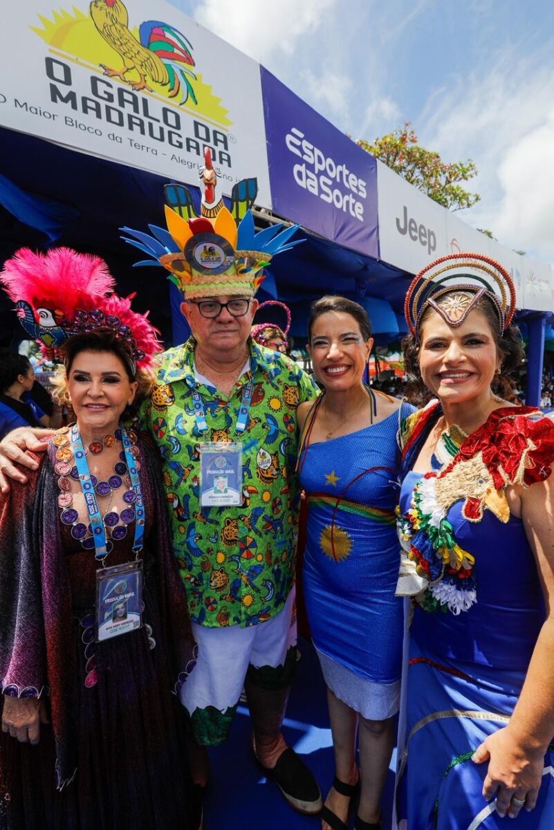 A festa reverencia o Galo Gigante, erguido na Ponte Duarte Coelho. Com 32 metros de altura, oito toneladas e o tema “Galo Folião Fraterno”, a alegoria homenageia o arcebispo emérito de Olinda e Recife, Dom Hélder Câmara. Nos trios elétricos que animaram o bloco passaram nomes consagrados como Almir Rouche, Nena Queiroga — homenageada do Carnaval de Pernambuco 2026 —, André Rio, Geraldinho Lins, Gustavo Travassos, Michelle Melo, Nonô Germano e os maestros Spok e Forró.