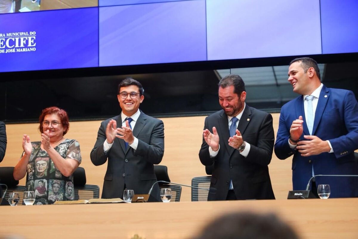 O engenheiro civil Victor Marques foi empossado prefeito do Recife nesta segunda-feira (06/04), em cerimônia realizada na Câmara Municipal. Ele assume o comando da Prefeitura após a renúncia de João Campos, com quem foi eleito vice-prefeito nas Eleições de 2024, em primeiro turno, com 78,11% dos votos válidos – a maior votação da história da capital pernambucana.
